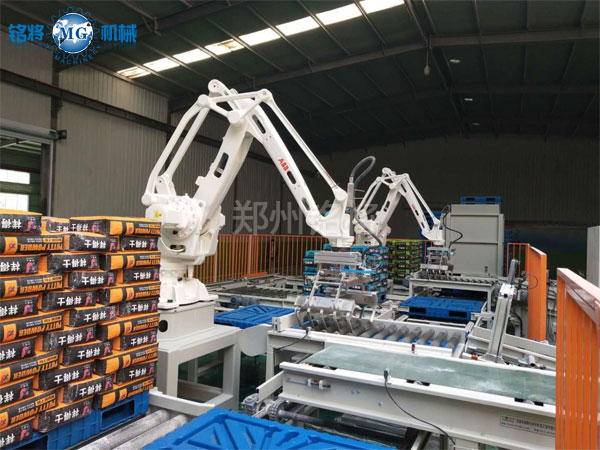4、能耗低。通常機(jī)械式的碼垛機(jī)的功率在25-35KW左右,而碼垛機(jī)器人的功率為5KW左右。大大降低了客戶的運(yùn)行成本。